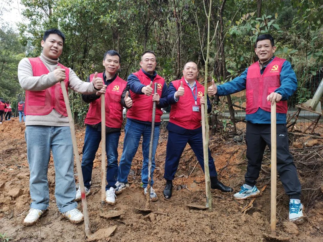 風華高科黨委積極響應廣晟控股集團黨委關于“向春天出發,建綠美晟林”的工作號召,以“黨建紅”引領“生態綠”,通過主題黨日、認種認捐等一系列活動,迅速帶動廣大黨員干部職工掀起植樹添綠的熱潮,先后種植、捐獻樹苗逾1000棵,以實際行動為推進“百千萬工程”和廣東綠美生態文明建設貢獻國企力量,彰顯國企擔當。