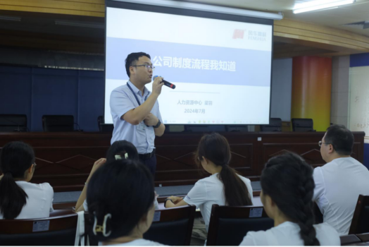 人力資源中心講師圍繞《企業人才育成體系及職業發展路徑》《公司制度流程我知道》兩個命題展開,讓新員工深入了解公司人才結構現狀、薪酬管理制度及員工行為守則等方面內容,對新員工的成才成長提出了良好的建議。
