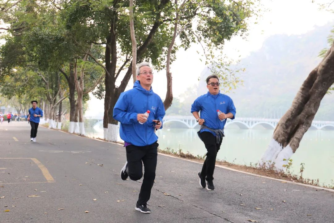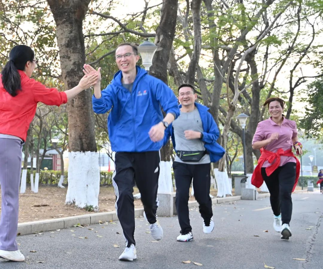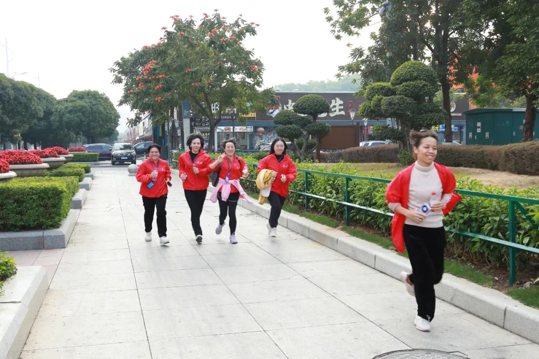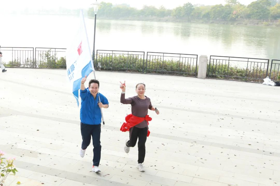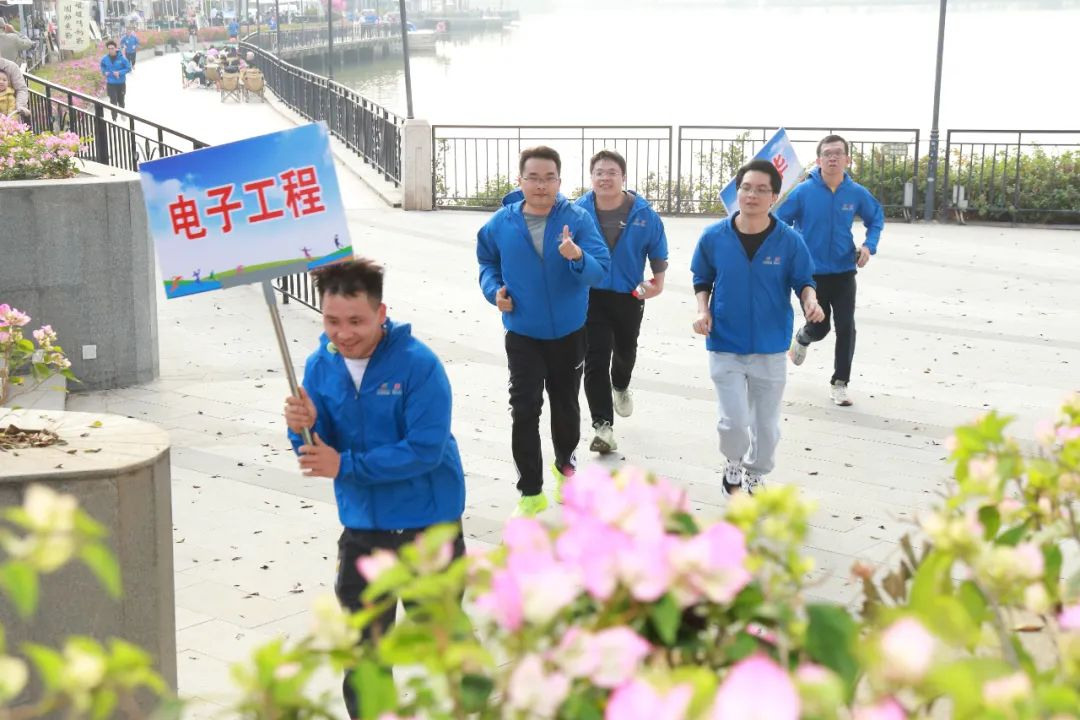 用腳步丈量奮斗,用汗水澆灌熱情。一支綿延的員工隊伍,浩浩蕩蕩地穿梭在牌坊公園綠道中,紅藍(lán)相間的衣服色彩與綠樹繁花相映成趣,為公園增添一道靚麗風(fēng)景。大家步伐堅定,充滿干勁地跑向5公里外的七星巖東門廣場,用奔跑的姿態(tài),用汗水與活力,一起奔向明媚的春天。