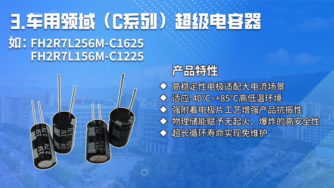 多年來,風華高科積極構建完善且豐富的超級電容器體系,成功推出了涵蓋多種類型的超級電容器產(chǎn)品,滿足了不同場景的多樣化需求。近期,風華高科推出了灌封系列和車用系列超級電容器以針對性解決極端環(huán)境和車用領域普通儲能器件的短板,滿足特定領域的迫切需求。