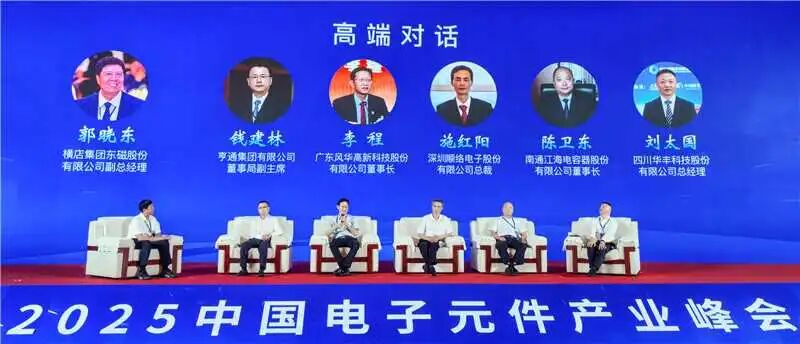 峰會(huì)以“創(chuàng)新驅(qū)動(dòng),共筑產(chǎn)業(yè)新生態(tài)”為主題。峰會(huì)特設(shè)了高端對(duì)話環(huán)節(jié),亨通集團(tuán)董事局錢建林副主席、廣東風(fēng)華高新科技股份有限公司李程董事長、深圳順絡(luò)電子股份有限公司施紅陽總裁、南通江海電容器股份有限公司陳衛(wèi)東董事長、四川華豐科技股份有限公司劉太國總經(jīng)理等五位企業(yè)家就電子元器件行業(yè)重點(diǎn)應(yīng)用市場(chǎng)的發(fā)展、如何遏制行業(yè)內(nèi)卷、中美貿(mào)易戰(zhàn)對(duì)電子元器件行業(yè)的影響等內(nèi)容,開展了熱烈討論。李程指出,國產(chǎn)替代帶來的存量市場(chǎng)、智能時(shí)代帶來的增量市場(chǎng)、新應(yīng)用場(chǎng)景帶來的產(chǎn)品更高性能需求,為關(guān)鍵基礎(chǔ)元器件尤其是MLCC帶來巨大發(fā)展空間;市場(chǎng)競爭本是行業(yè)發(fā)展的動(dòng)力,但需警惕過度內(nèi)卷帶來的資源浪費(fèi)與創(chuàng)新乏力問題,企業(yè)應(yīng)主動(dòng)把握國產(chǎn)替代機(jī)遇,大力弘揚(yáng)企業(yè)家精神,筑牢戰(zhàn)略定力,堅(jiān)決摒棄盲目與破壞產(chǎn)業(yè)生態(tài)的惡性競爭,聚焦高端化創(chuàng)新與轉(zhuǎn)型方向,加強(qiáng)產(chǎn)業(yè)鏈上下游技術(shù)的整合與協(xié)同。同時(shí),在政府及行業(yè)協(xié)會(huì)的牽頭組織下,積極制定高端產(chǎn)品的強(qiáng)制性標(biāo)準(zhǔn),通過技術(shù)標(biāo)準(zhǔn)、專利有效的法治保護(hù)避免內(nèi)卷,為行業(yè)整體高質(zhì)量發(fā)展提供優(yōu)秀的生態(tài)環(huán)境支撐。