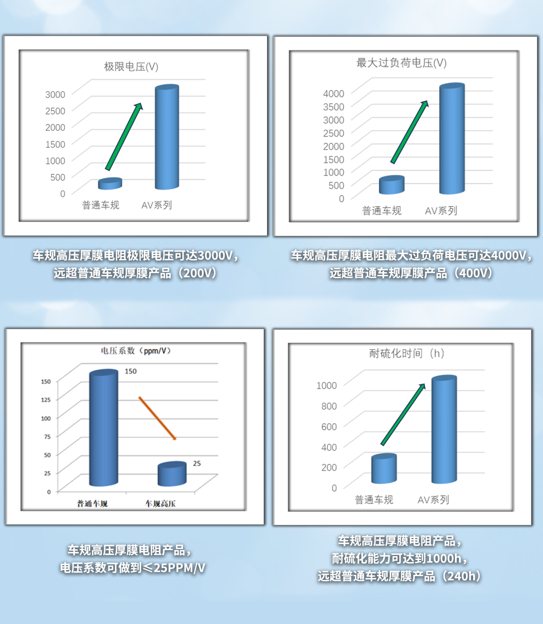 當(dāng)車載動力系統(tǒng)、高壓電源邁入800V+時代,普通車規(guī)電阻200V的耐壓水平,早已難以應(yīng)對瞬態(tài)高壓與脈沖威脅——風(fēng)華高科車規(guī)級AV系列高壓厚膜電阻,正以硬核技術(shù)突破瓶頸,為電子系統(tǒng)筑牢“高壓安全盾”。